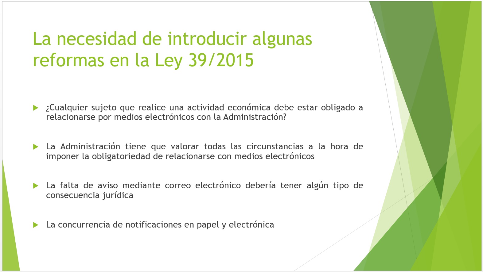 Así se centró en lo que a su juicio es la necesidad de introducir algunas reformas a la ley 39/2015 y se refirió a a que no se debería obligar ni a las personas físicas ni a las jurídicas a relacionarse con la Administración de manera digital y que siempre tendría que haber una asistencia técnica o mecanismos que alivien estas situaciones. De hecho, ejemplificó, existen sentencias que censuran que se imponga la comunicación por medios electrónicos para cualquier administrado, como ocurrió con el Tribunal Superior de Justicia del País Vasco, que incide en la necesidad de ponderar estos impactos sociales.