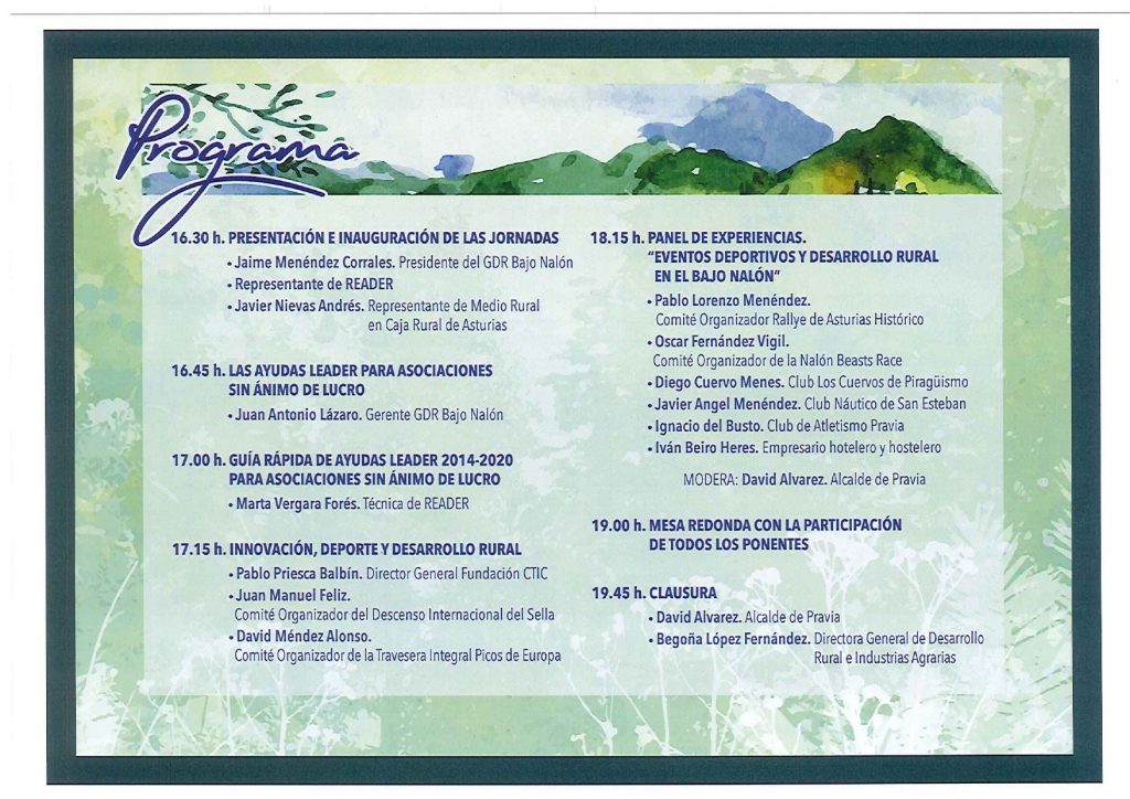 PROGRAMA JORNADAS BAJO NALÓN FUENTE DE LA NOTICIA: GRUPO DE DESARROLLO RURAL BAJO NALÓN