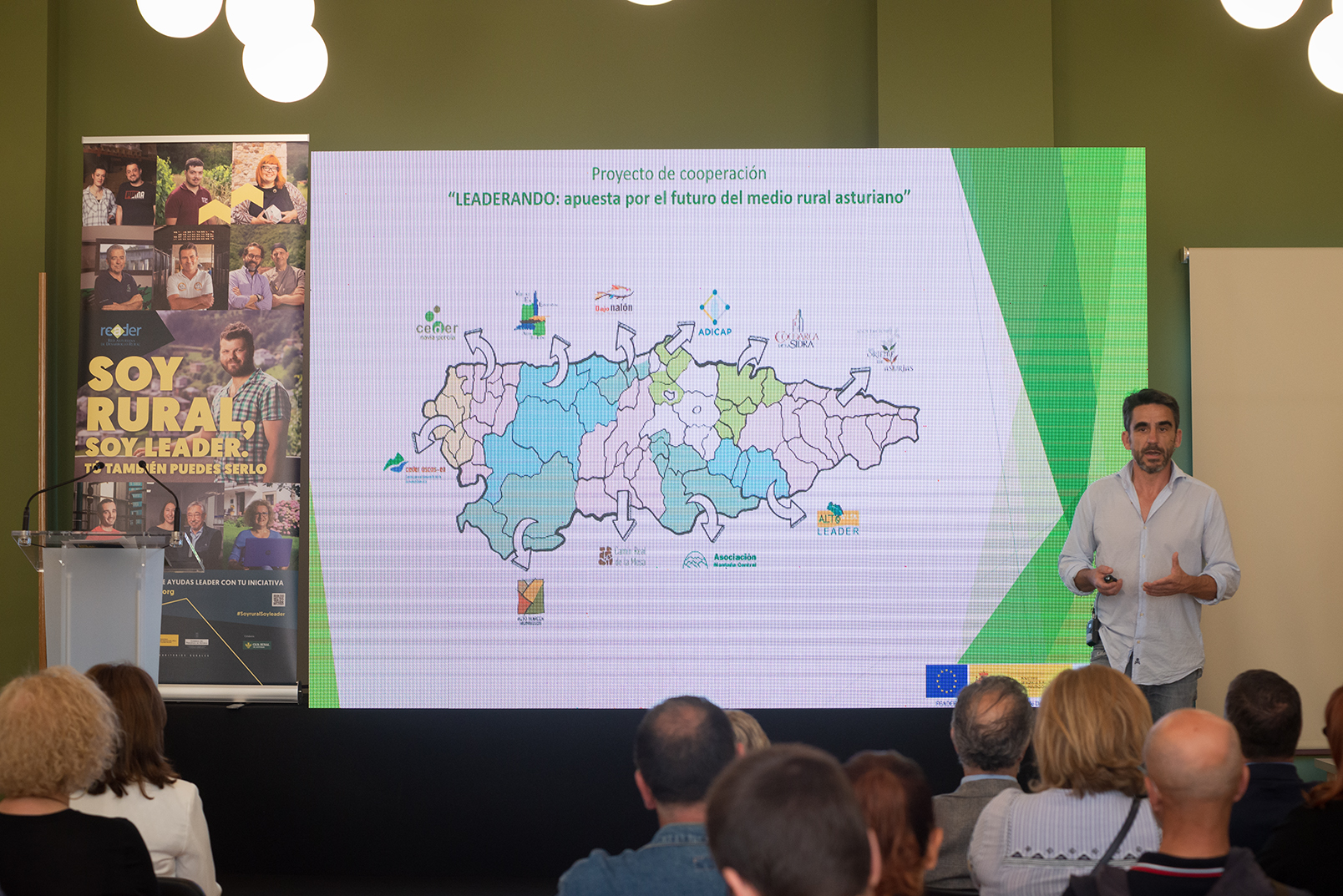 ‘Soy rural, soy LEADER’ es una campaña pionera en territorio español que pretendía dar a conocer esta iniciativa, así como la diversificación económica que procura en el medio rural que estuvo activa entre los meses de noviembre y enero en cuatro de las principales ciudadanas asturianas. Éste fue el marco en el que se presentó también el proyecto de cooperación LEADERando que están realizando los once Grupos de Desarrollo Rural que componen la Red, así como la firma de las adendas de los convenios entre la Consejería y los GDR.