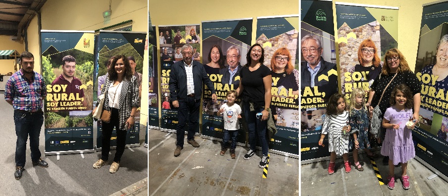 La campaña, que antes de finalizar este año se expondrá en mupis de las grandes ciudades de la región, incluye la imagen de un representante de las ayudas LEADER en cada comarca rural asturiana. A lo largo de los tres días que duró la feria pasaron por el stand tres de los 11 protagonistas de los roll up, en uno de los casos por partida doble ya que los beneficiarios son padre e hija. El primero fue José Manuel Pardo, de Ibias, quien es la imagen de la campaña para el GDR Alto Narcea Muniellos.