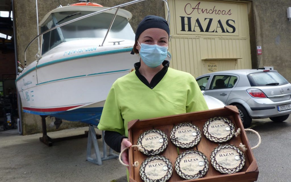 Fue en la propia tienda donde Agustín y yo empezamos a percibir el interés y la demanda que había, especialmente por parte de los turistas, por las anchoas de calidad, y gracias a las trabajadoras de antiguas conserveras lastrinas, algunas de ellas clientas habituales de Alimentación Hazas, empezamos a trabajar esta idea de negocio. Estas mujeres, alguna de ellas con más de 90 años, nos enseñaron sus recetas, nos aconsejaron y tras muchas pruebas con ellas y amigos del entorno, creamos el producto de Anchoas Hazas. Tengo que decir que sin ellas nunca hubiéramos aprendido este oficio. Además, tampoco podemos perder los sabores tradicionales de los territorios porque son una parte muy valiosa de su identidad. Y así fue como en febrero del año 2018 abrimos nuestra conservera y desde entonces no hemos parado de trabajar.