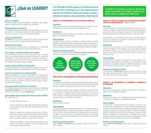 Con este tríptico, del que se han editado 3.500 ejemplares, se pretende ofrecer información básica sobre las ayudas LEADER, así como la información relativa a la localización de los once Grupos de Desarrollo Rural del Principado de Asturias.