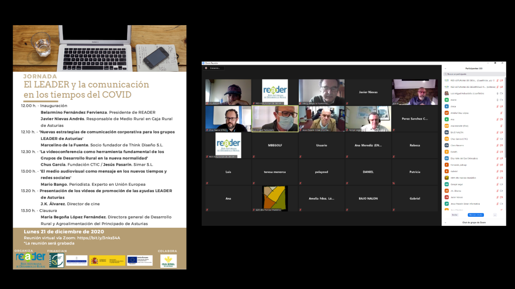 El momento más emotivo de la jornada vino con el pase del cortometraje ‘Generamos futuro: la labor de los grupos LEADER de Asturias’, que anima a la persecución de los sueños y al emprendimiento en este caso en el medio rural, muy bien recibido por las más de 40 personas que se conectaron a lo largo de la jornada, con presencia de compañeros de la Red Andaluza de Desarrollo Rural (ARA), la Associació LEADER Illa de Menorca, la Federación de Parroquias Rurales del Principado de Asturias, entre otros.