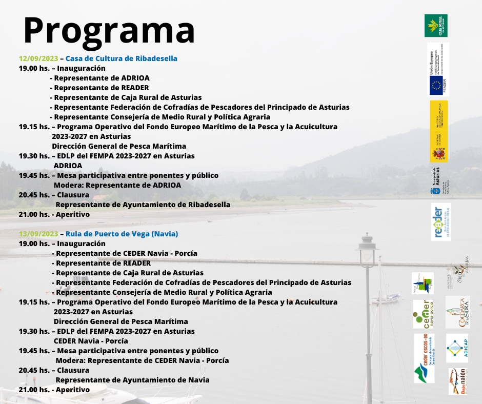 La Red Asturiana de Desarrollo Rural (READER) y los Grupos de Acción Local Pesquera (GALP) han organizado sendos seminarios de Participación Ciudadana para el diseño de las Estrategias de Desarrollo Local Participativo (EDLP) los próximos días 12 y 13 de septiembre.