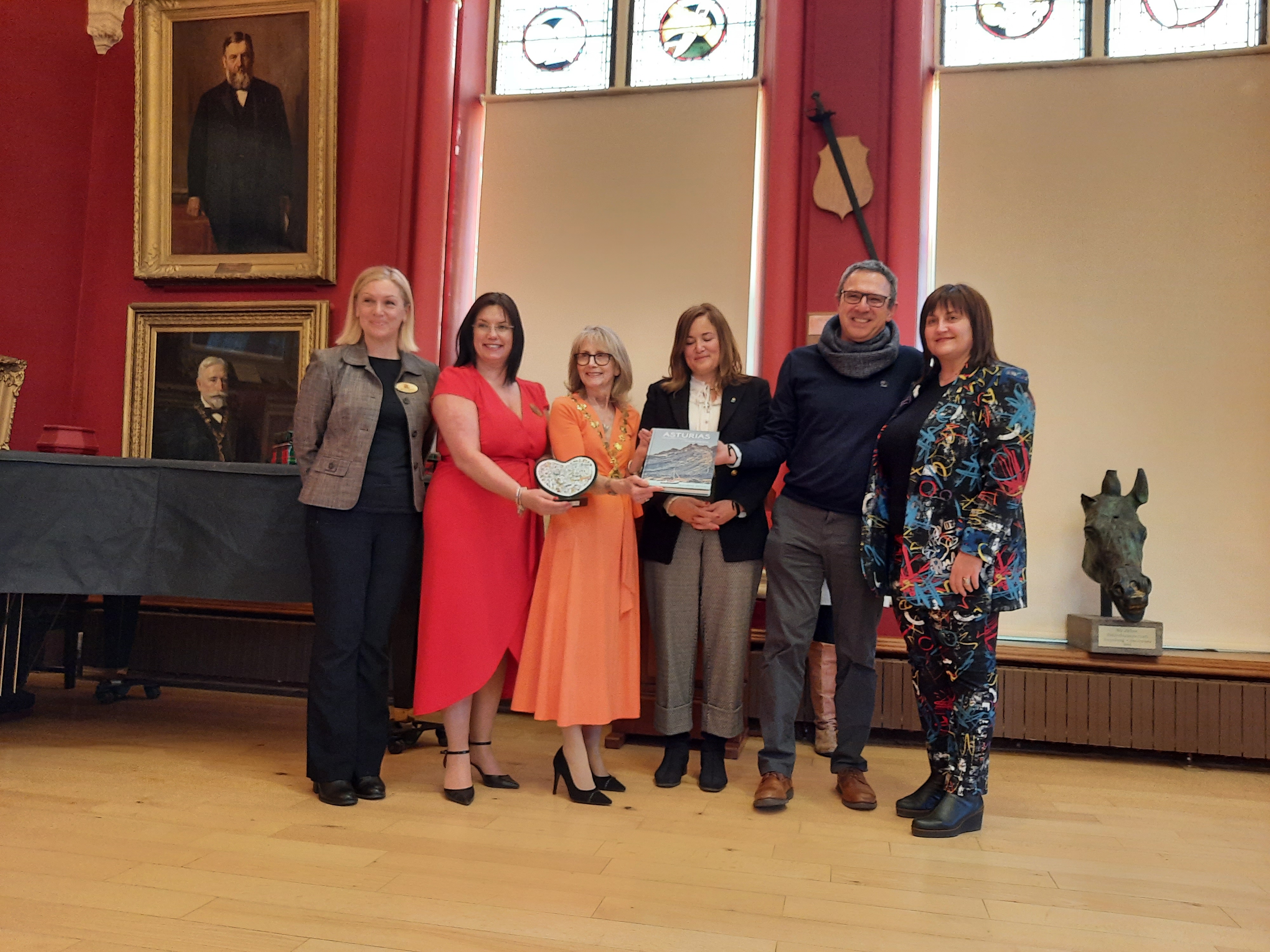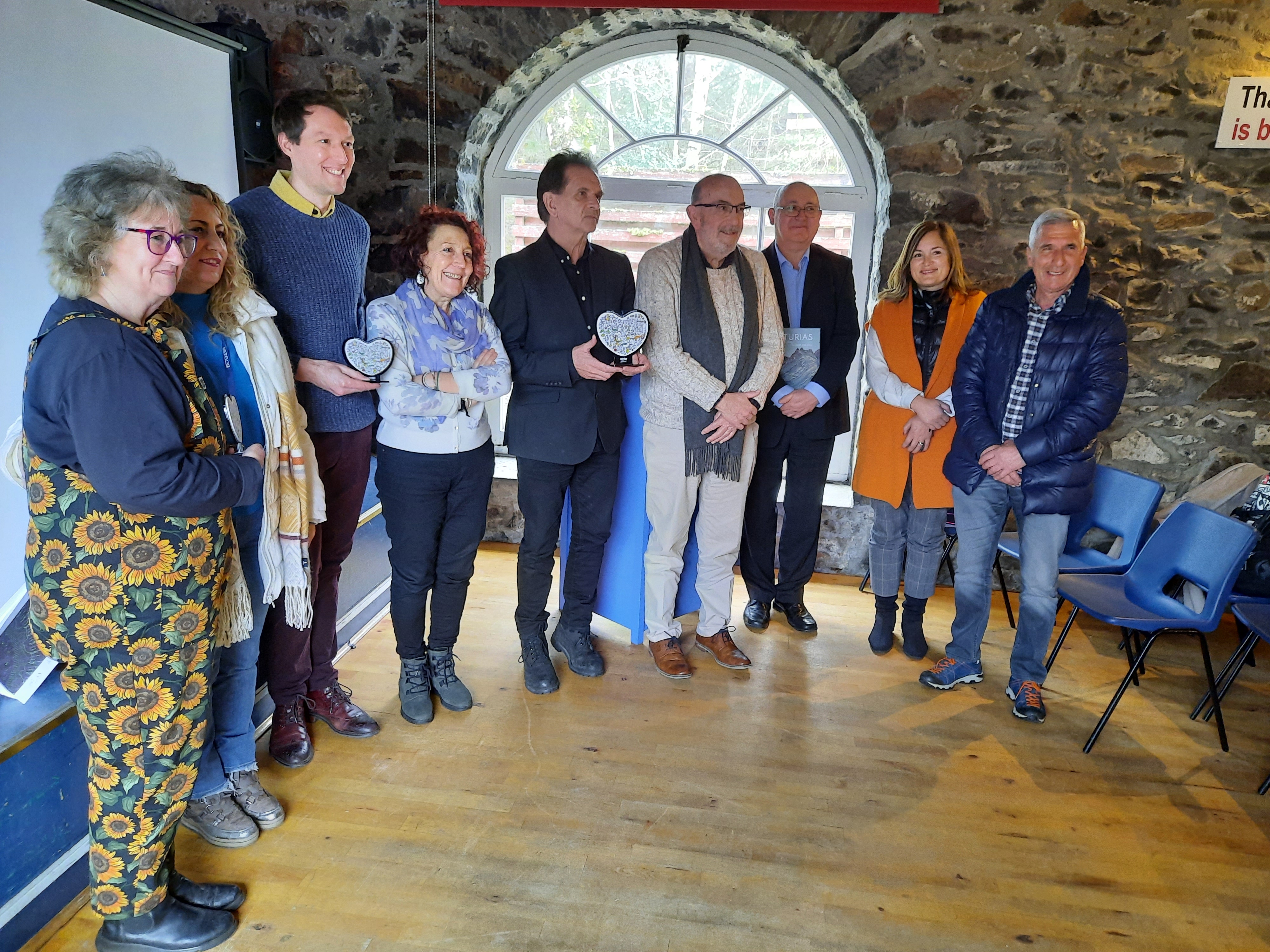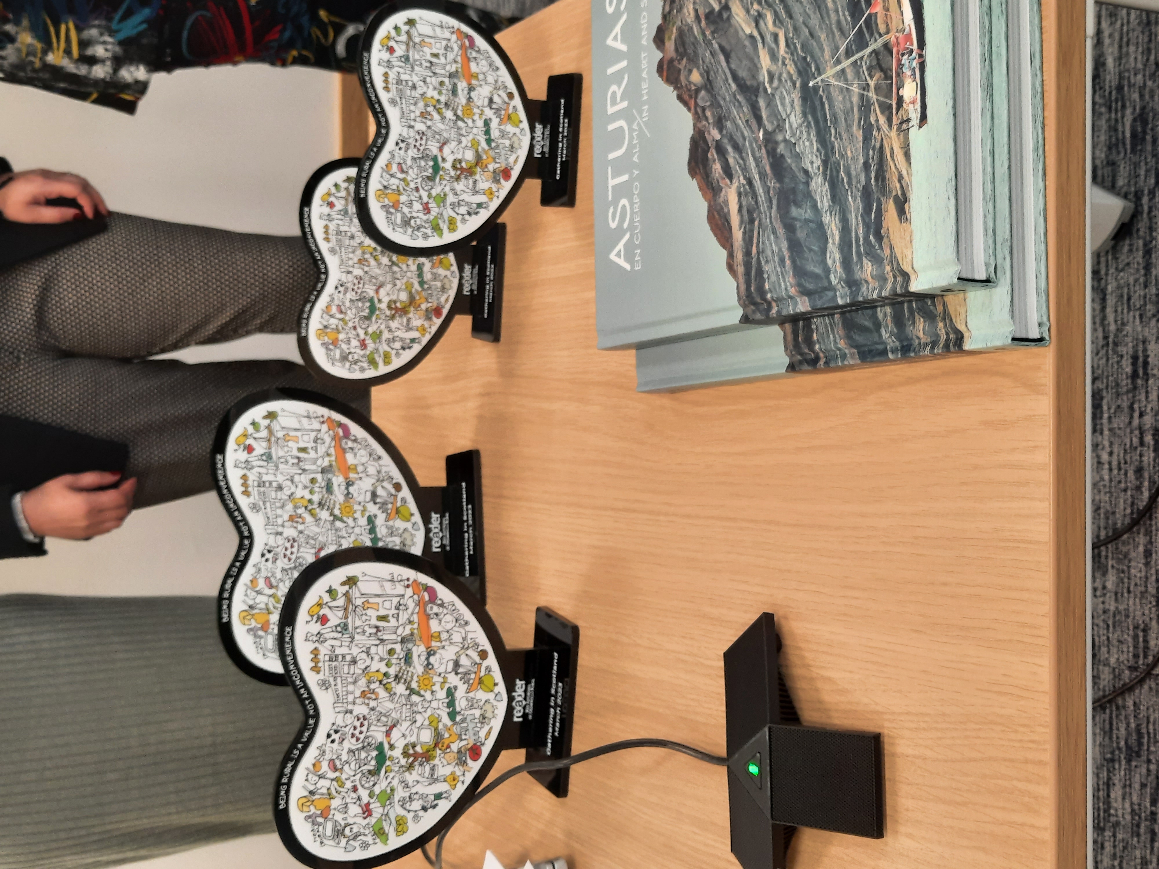 La Red hizo entrega a las diferentes entidades que recibieron a la delegación asturiana de un detalle que consistió en un corazón con la leyenda en inglés "Ser rural es un valor, no un inconveniente" y del libro 'Asturias. En cuerpo y alma', editado por Delallama Editorial.
