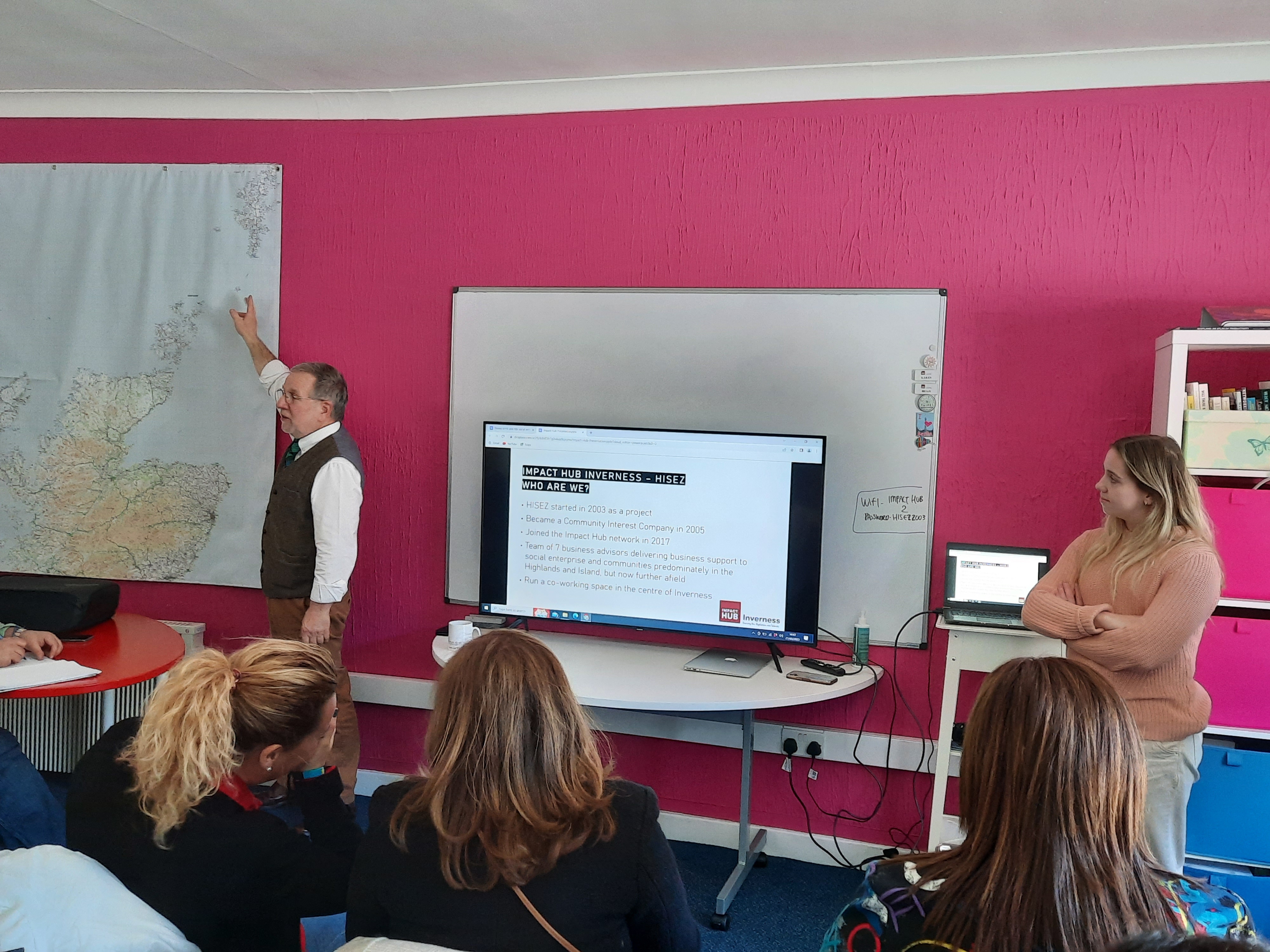 Por la tarde hubo una visita al Impact Hub Inverness, donde Brian Weaver, cofundador del HUB, habló de los tiempos felices anteriores al Brexit y de su proyecto, que si bien no recibe ayudas públicas directas, son las Instituciones Públicas sus principales clientes. Además se tuvo oportunidad de conocer otros proyectos con implicación comunitaria, como Highland Comunity Waste Partnership a través de su coordinadora Isabel McLeish, orientado al fomento del reciclaje y la segunda oportunidad de todo tipo de enseres, con una clara base medioambiental.