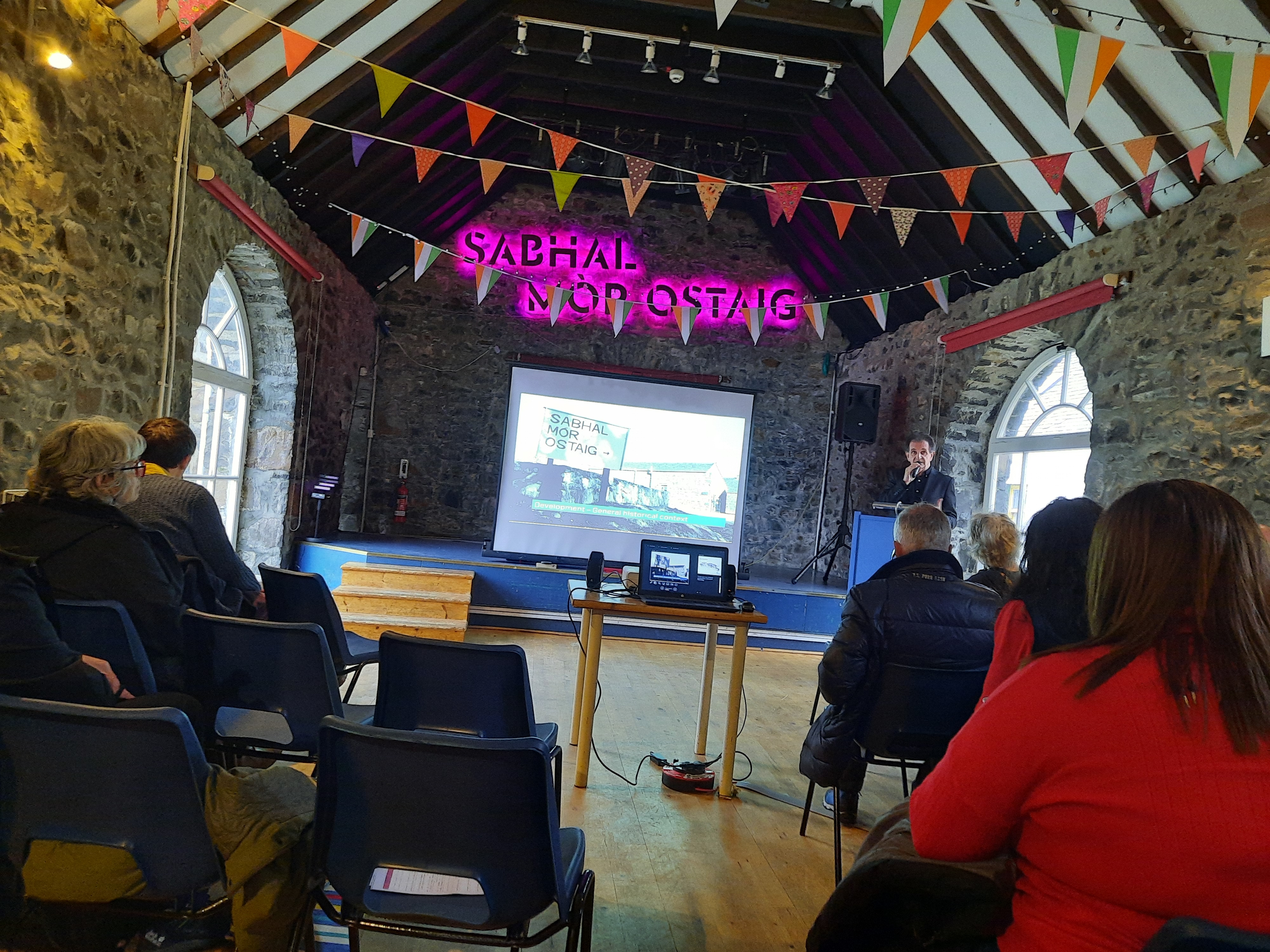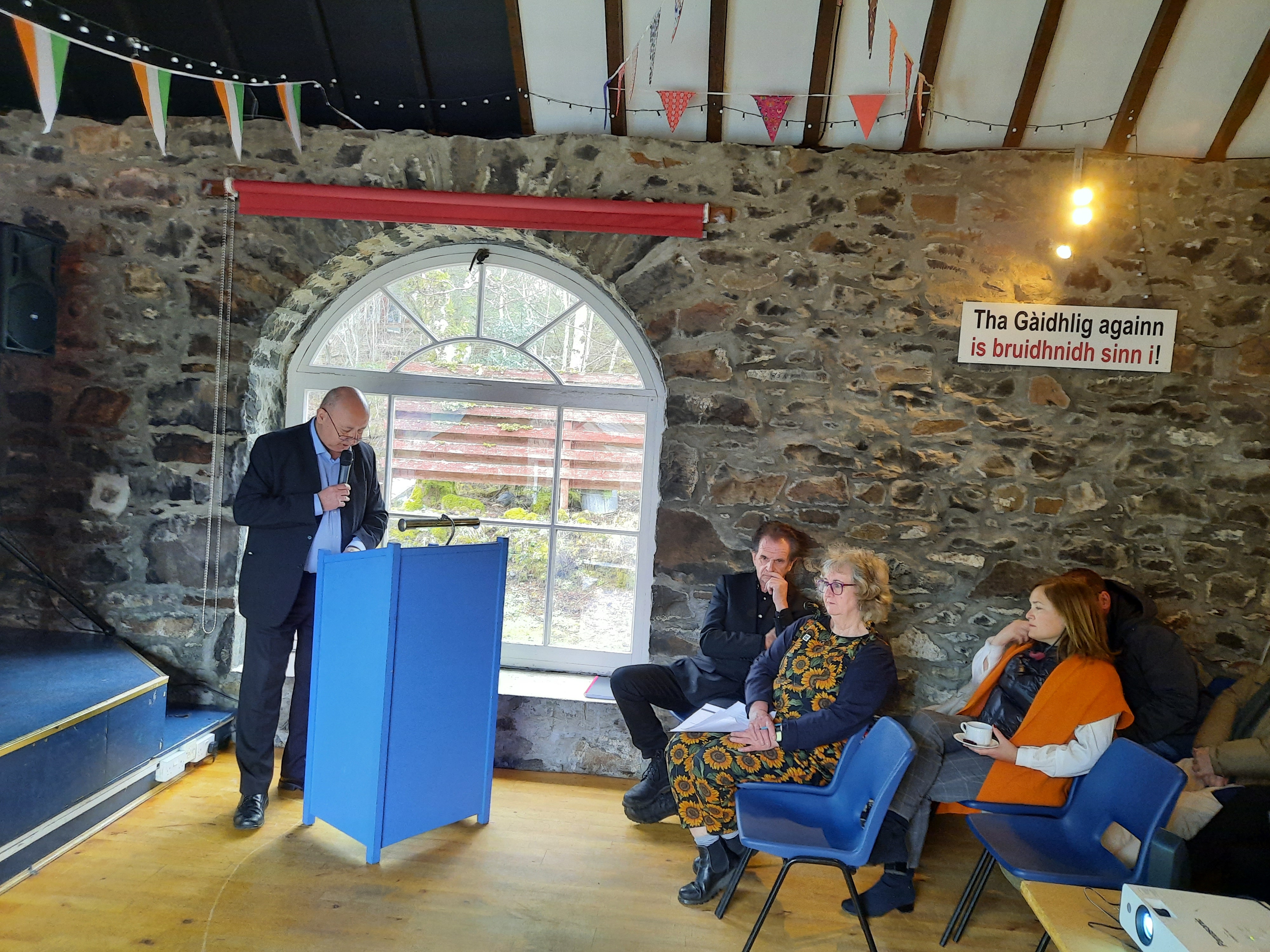 Donnie Munro, director de Desarrollo y Artes de SMO, centró su discurso en la importancia de lograr un apoyo político al Gaélico, que ha logrado con todos los partidos, y desarrollar iniciativas para su protección y puesta en valor. Han desarrollado varios proyectos que, fundamentados en la defensa de la comunidad gaélica, han servido para atraer población a la isla y desarrollar políticas de vivienda. Explicó que el foco se haya puesto en desarrollar las habilidades idiomáticas e incrementar el número de hablantes de Gaélico no solo en las Tierras Altas, sino en toda Escocia.
