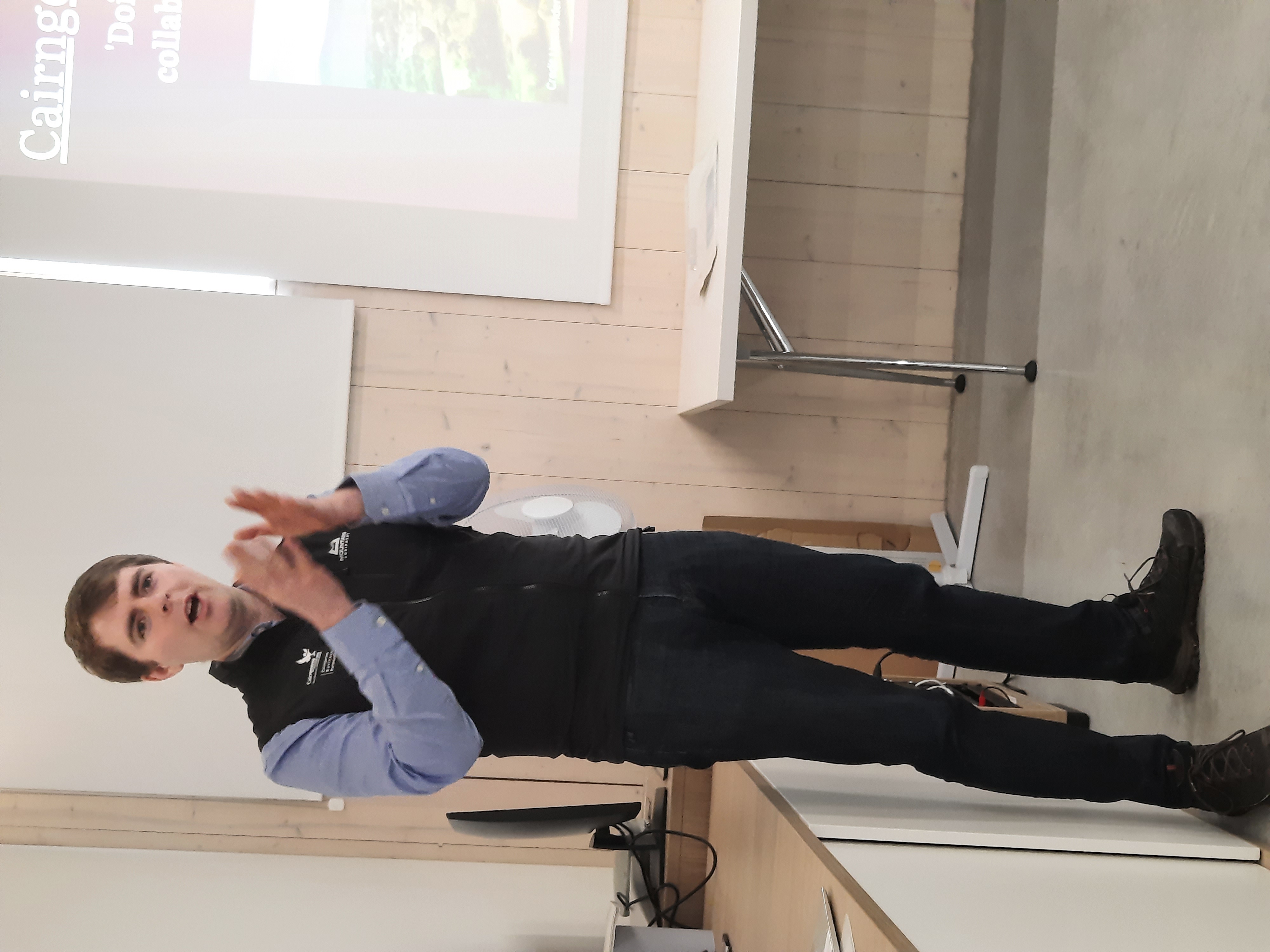 Grant Moir, CEO del Parque, explicó que el de Cairngorms es el mayor del Reino Unido con una superficie que supone la mitad de Asturias, un presupuesto anual de 1,5 millones de libras y tan solo 19.000 habitantes. La mayor parte del territorio es de propiedad privada, de modo que se trabaja en un modelo público-privado donde intervienen más de 100 organizaciones y personas diferentes. Al año reciben unos 2 millones de visitantes cuando hace más de 20 años estas cifras se situaban en 1,2 millones. Se trabaja muy duro por evitar una presión y un impacto negativo en el entorno.