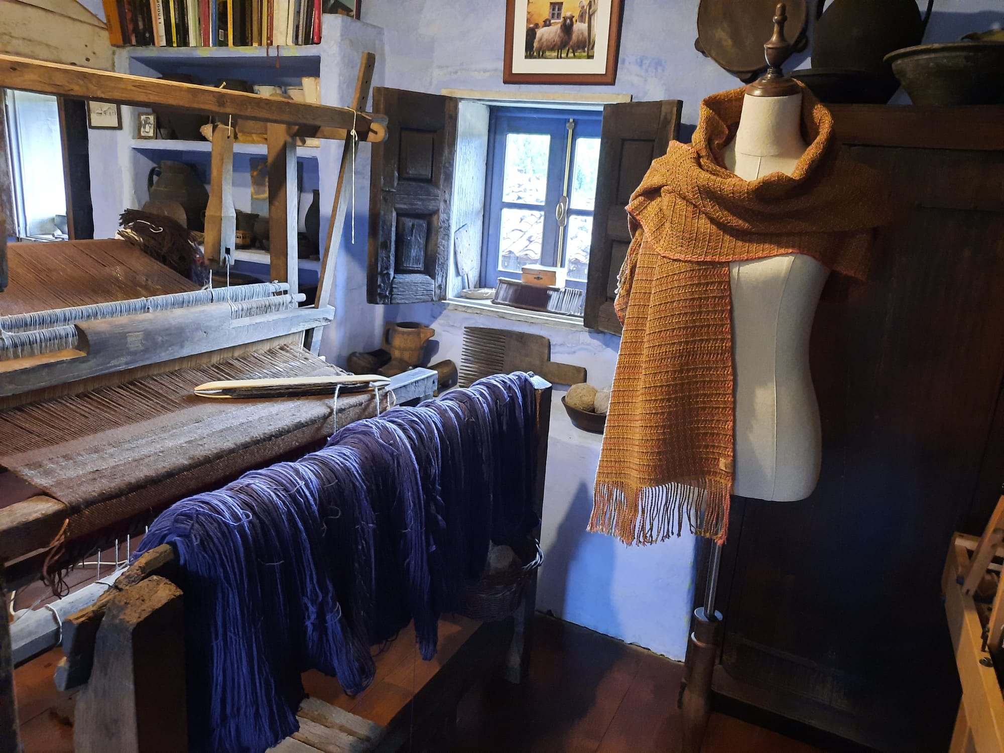 Paz Mesa dejó el funcionariado para apostar por el telar artesanal, una actividad ligada al territorio, que aprovecha los recursos del entorno. Y desde aquí, en una casa que cuenta con llagar y con dos hórreos históricos, da forma a un proyecto que probablemente no podría desarrollarse en otro lugar que no fuera el pueblo, que no solo le inspira, sino que también le aprovisiona de las materias primas que necesita para sus creaciones.